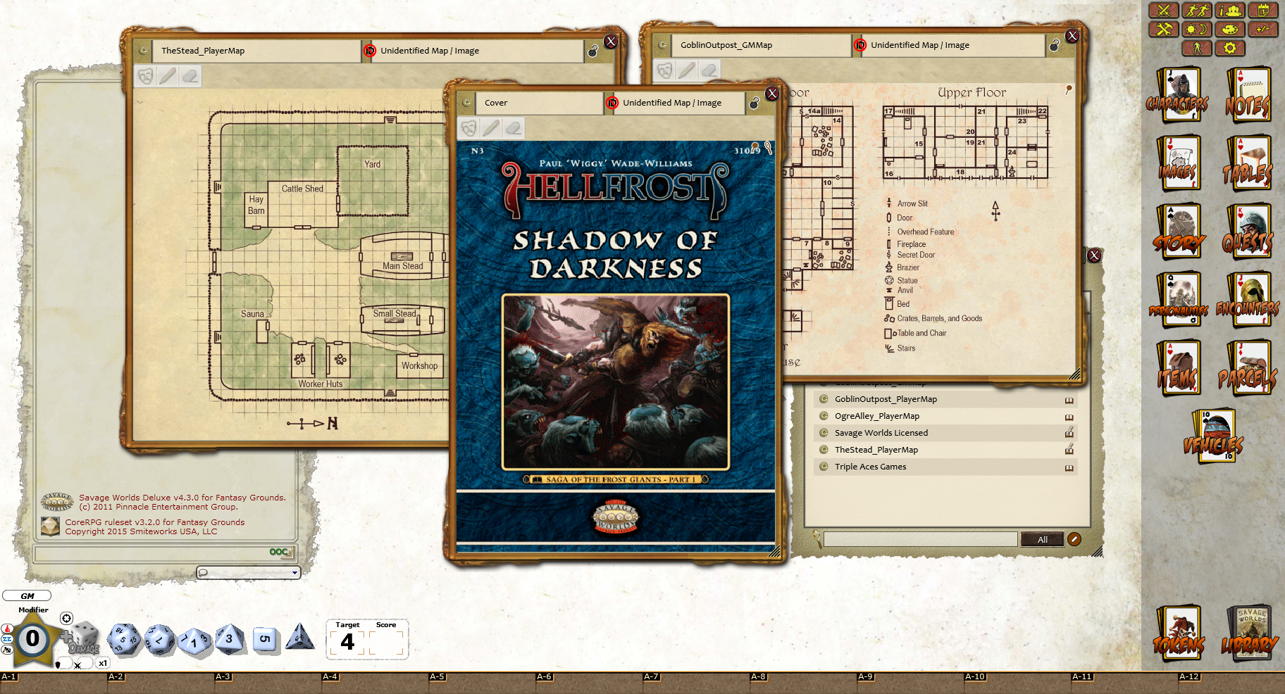 Requires: The free Fantasy Grounds virtual tabletop (VTT) software, the Savage Worlds v3