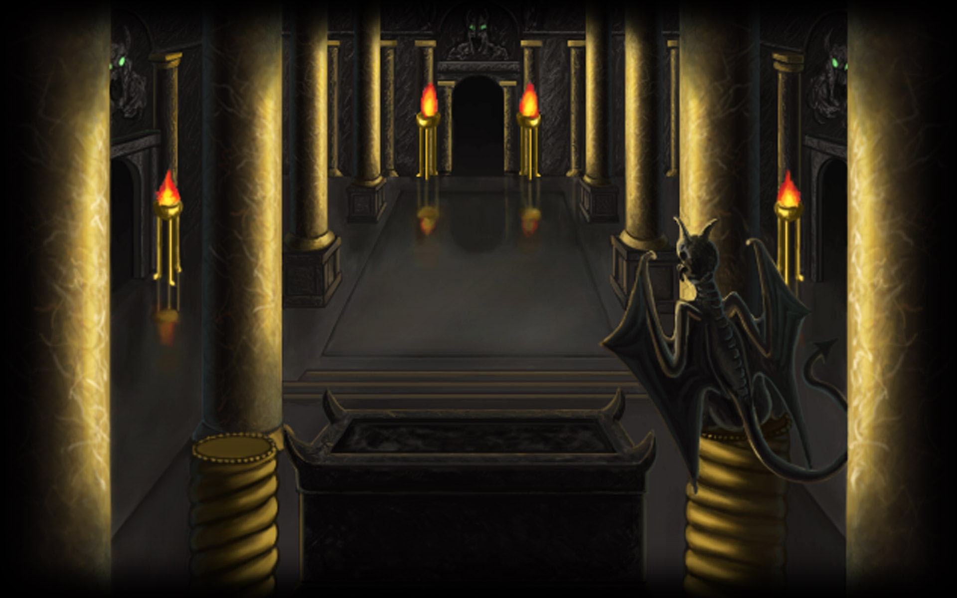 Deep within his dungeon, Yrolg the Necromancer is summoning a mighty demon to conquer the World. Three brave adventurers, a warrior, a rogue and a sorceress, come to his lair to disrupt this dark ritual. Your job is to stop them! Lead the heroes into traps and to a nasty demise, in Quest for Yrolg.