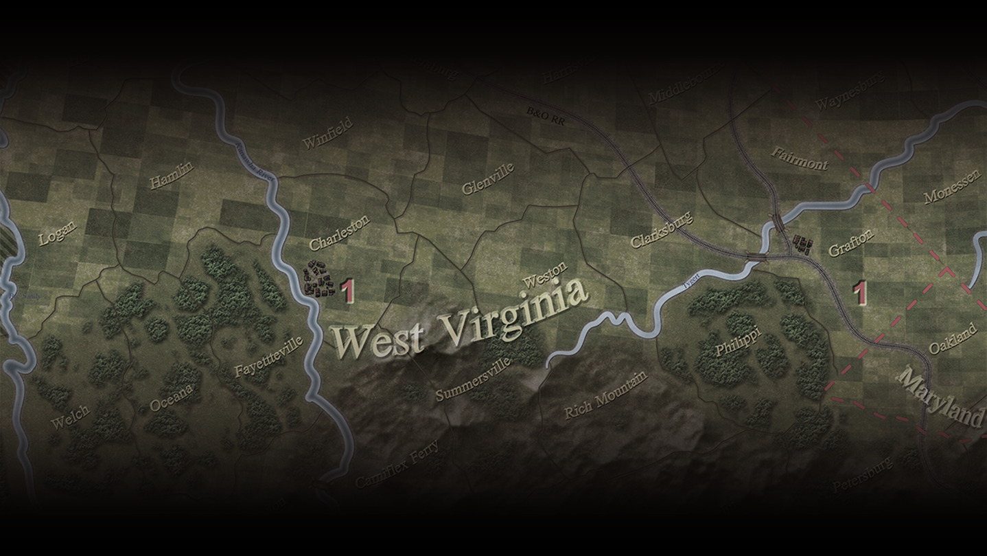 West Virginia 1861 lasts 16 turns each representing about two weeks between May and December 1861. It opposes the Union and the Confederacy over the territory of the future state of West Virginia.Few forces of both sides are present on the field initially, but the will of the local unionists to win the referendum and keep their state within the Union and away from the secession will push both sides to send there an increasing number of forces, led by famous commanders surch as McClellan or Lee.