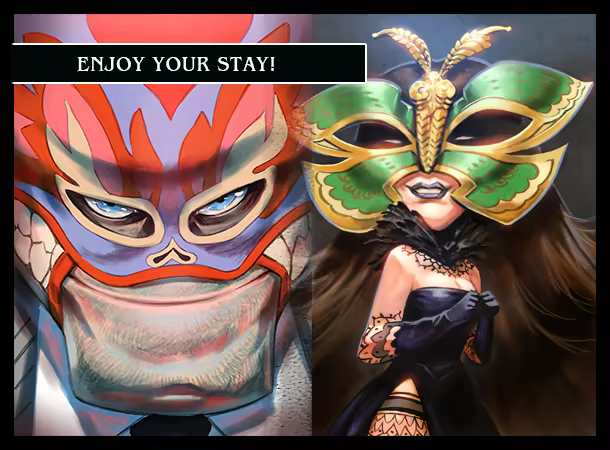 You awake on the floor of one of the rooms wearing a mask with a bloody handprint across it. It protects you from the worst of the evil that lays across the mansion, but you can only watch, and spy, and try to learn each guest's secrets so you can save them from their bloody fate.