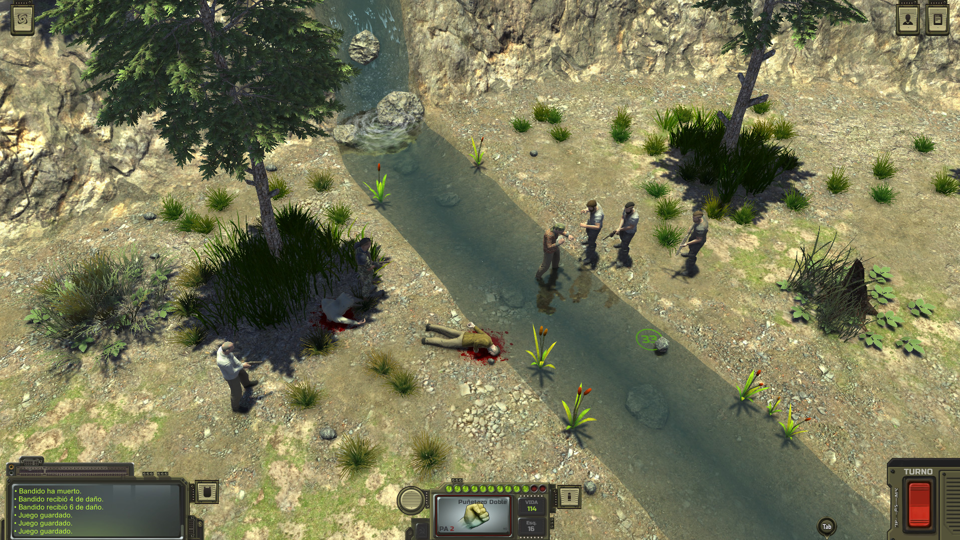 Combate por turnos, inspirado en Fallout 1 y 2.