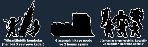 Oyun, özel alan saldırıları, kombolar, güçlü büyüler ve on bir oynanabilir karakter (yedi tanesi kilitli) içeriyor.