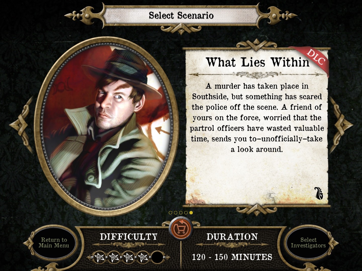 What Lies Within is a scenario for 1-5 investigators in which a murder is only the beginning of the inexplicable occurrences in one Arkham mansion. Investigators will explore a murder scene, fend off terrible creatures, encounter strange phenomena, and investigate the noises coming from the cellar of the supposedly empty house. They must discover why the victim was murdered–and what he did with his life before it was so violently ended–in order to leave the mansion alive.