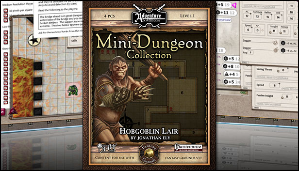 Requires: The free Fantasy Grounds virtual tabletop (VTT) software and the included Pathfinder Ruleset.