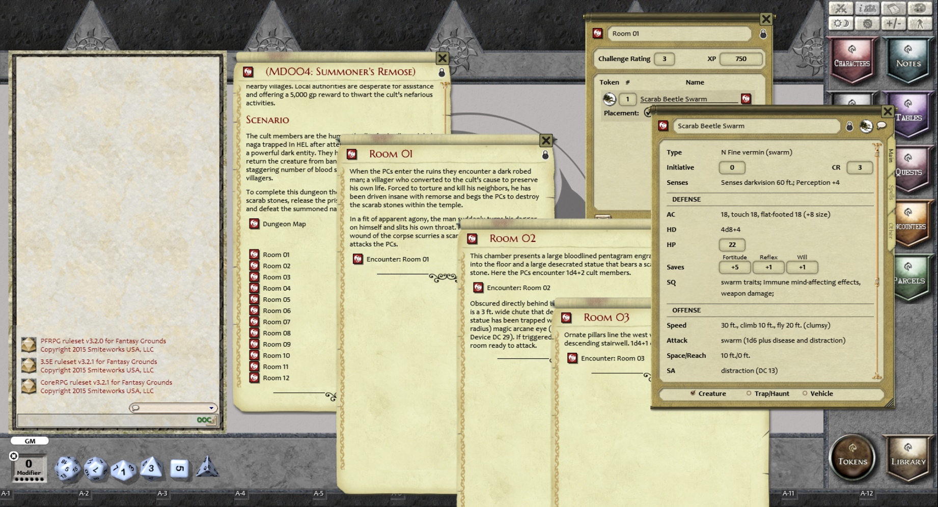 Requires: The free Fantasy Grounds virtual tabletop (VTT) software and the included Pathfinder Ruleset.