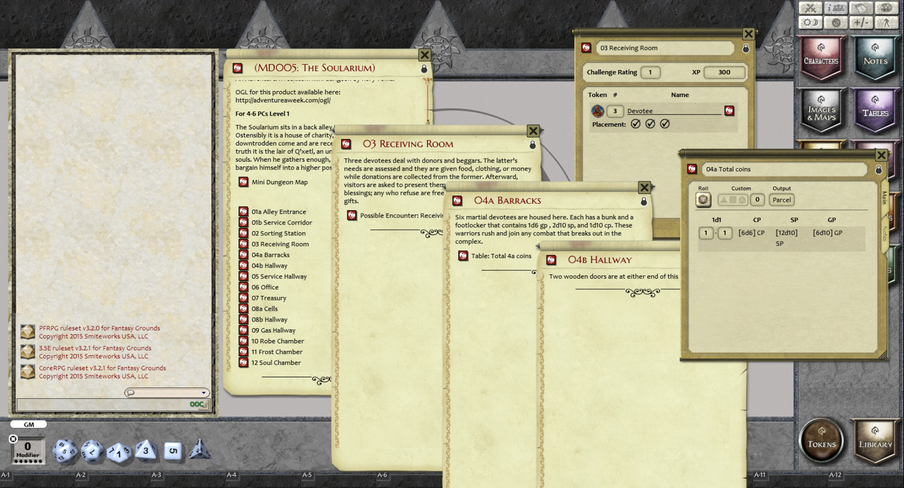 Requires: The free Fantasy Grounds virtual tabletop (VTT) software and the included Pathfinder RPG and D&D 3.5/ OGL ruleset.