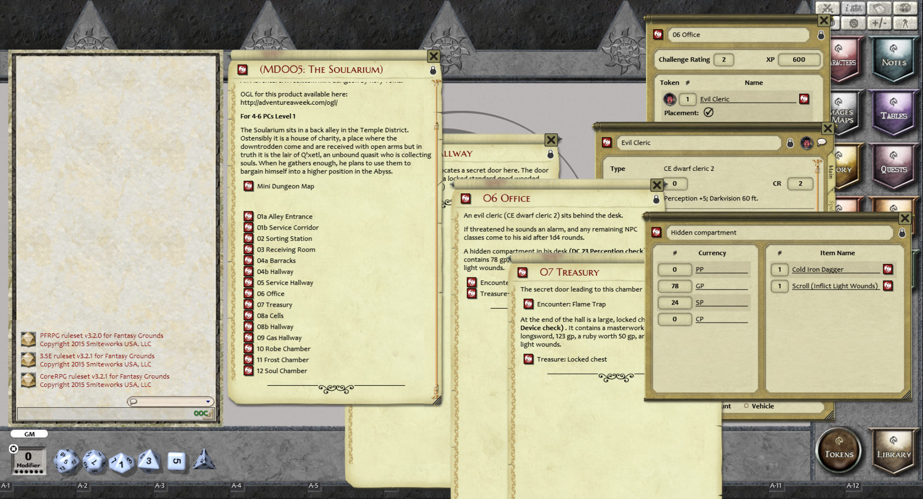 Requires: The free Fantasy Grounds virtual tabletop (VTT) software and the included Pathfinder RPG and D&D 3.5/ OGL ruleset.