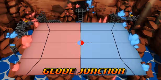 An abandoned rebel mining operation turned dodgeball arena. This map has more space than usual, but targeting the crystals in the back will cause a section of your opponent’s stage to collapse.