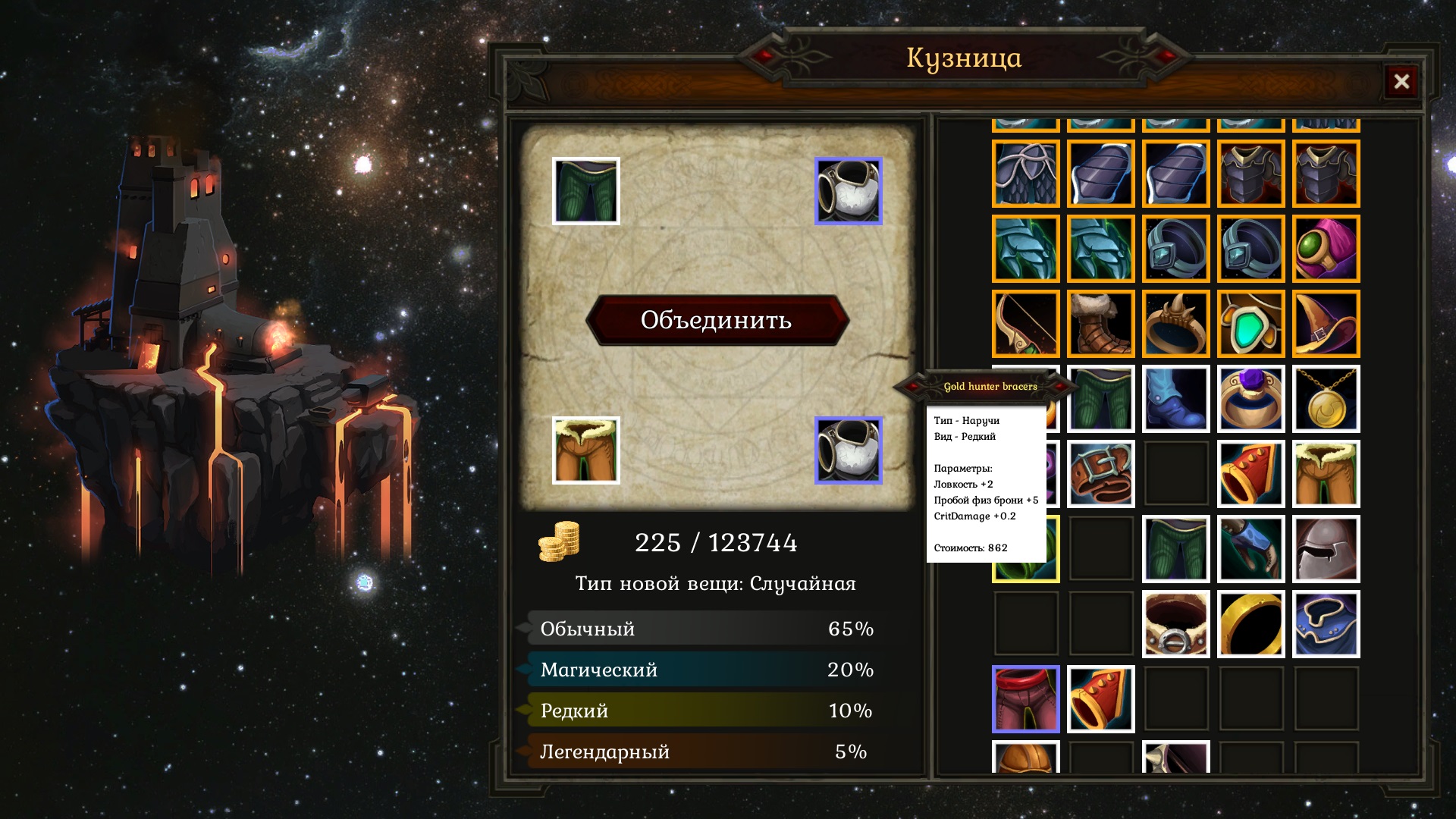 • Сотни вещей (обычные, магические, редкие, легендарные, сетовые), выбей их из монстров или создай в кузнице!