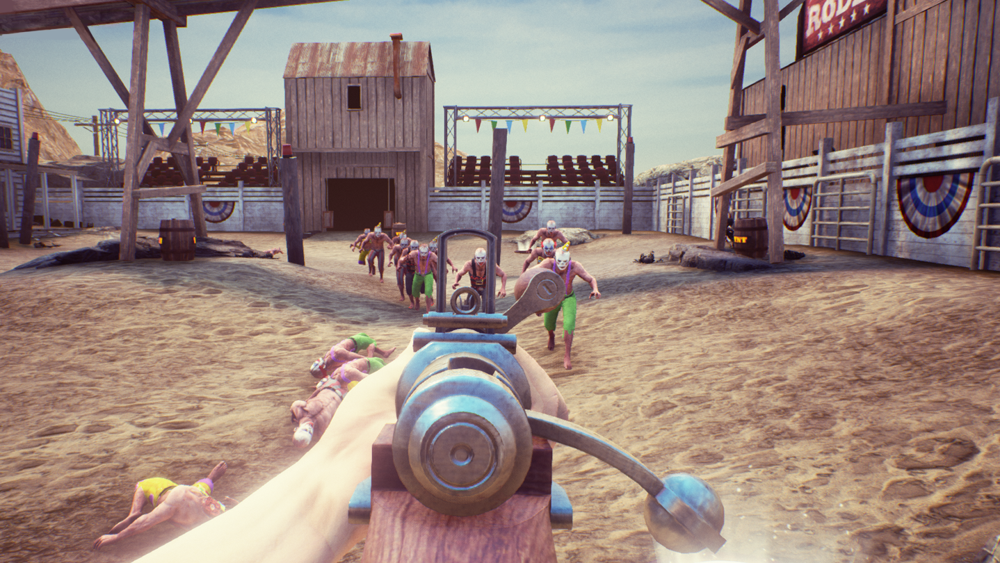 Super death arena is an online horde mode survival game where you fight increasingly larger waves of mutants in an all out arena brawl. The goal is to survive ten waves of increasingly more mutants where you receive better and better weaponry to use. Keep moving and look out for bear traps that spawn in the level so you don't get stuck, and keep a distance when blowing up explosive barrels in the levels, they damage mutants as well as yourself or other players.