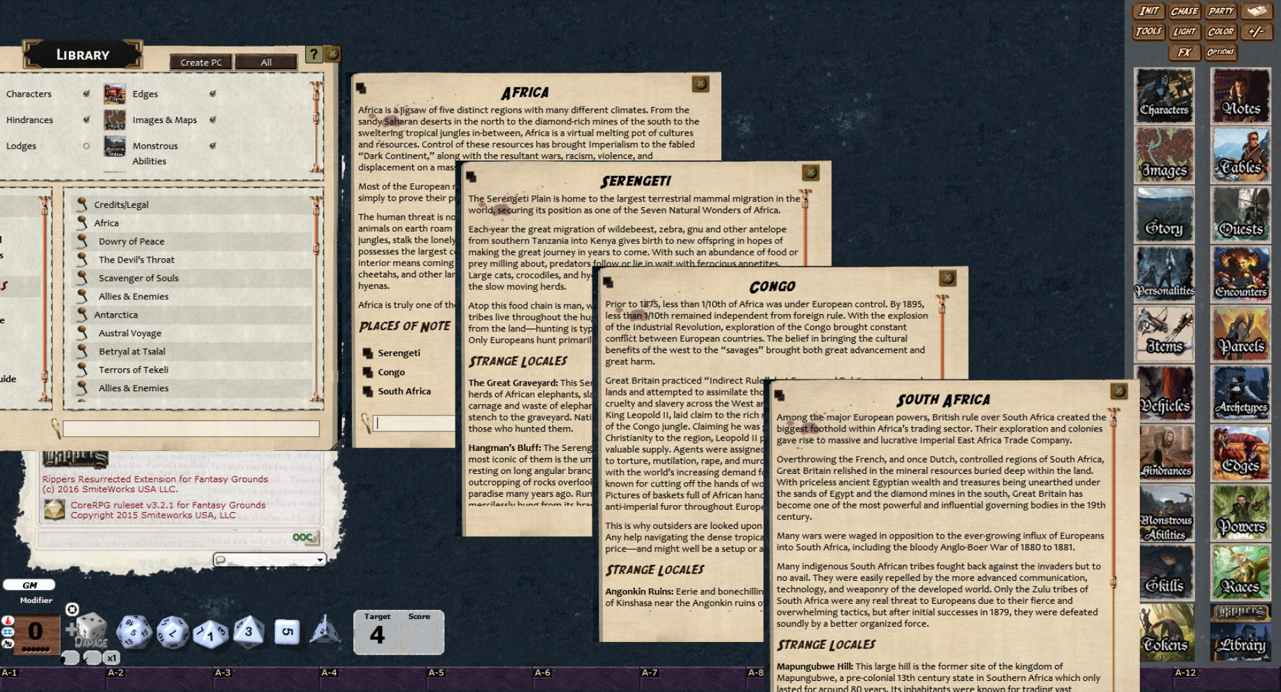 Requires: The free Fantasy Grounds virtual tabletop (VTT) software and a one time purchase of the Savage Worlds ruleset as well as a one time purchase of the Rippers Resurrected Players Guide and Rippers Resurrected Game Masters Handbook (GM only).