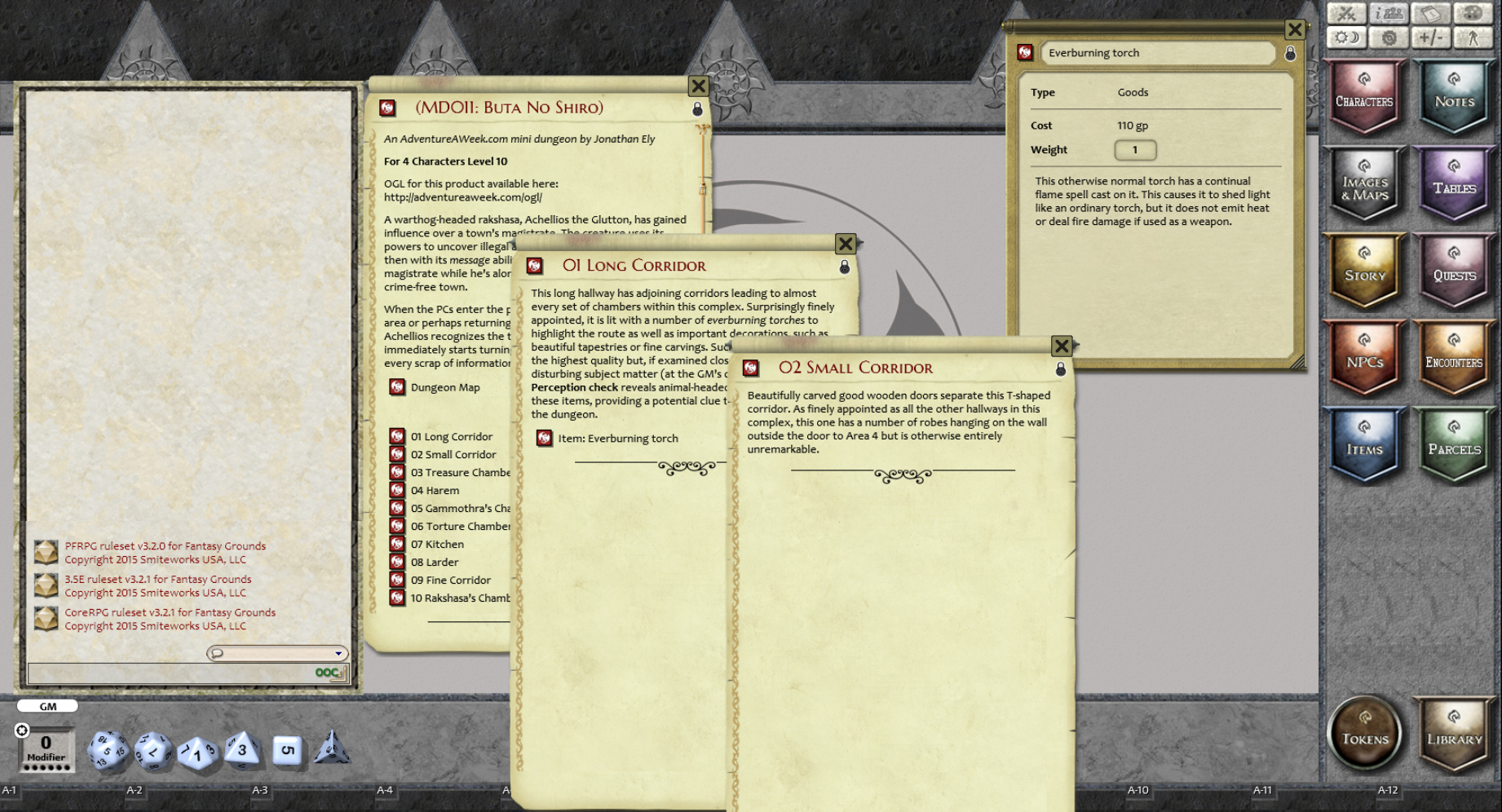 Requires: The free Fantasy Grounds virtual tabletop (VTT) software and the included Pathfinder RPG and D&D 3.5/ OGL ruleset.