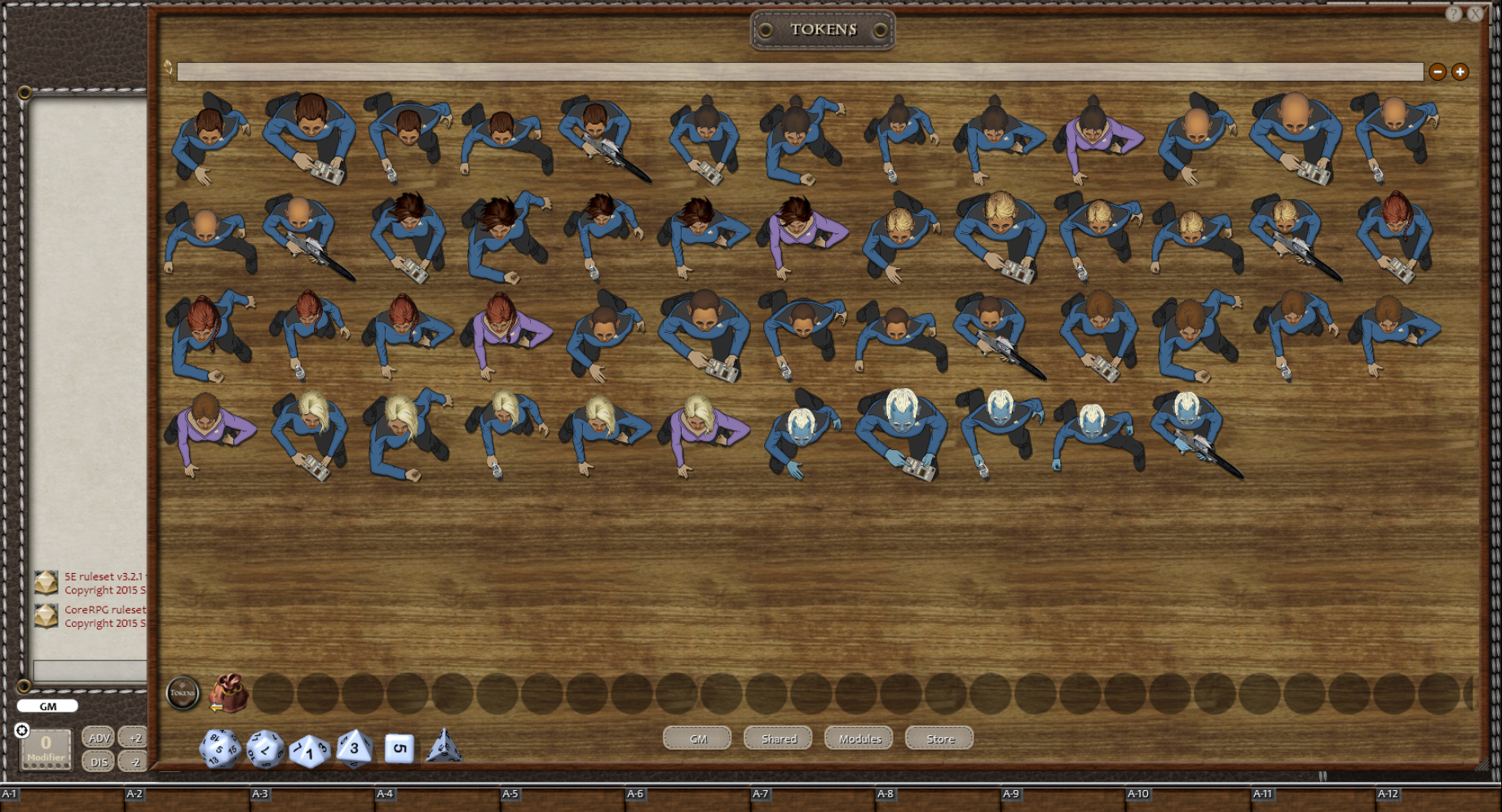 This token pack contains 150 tokens, 50 base tokens in three colors: For use on your star-cruiser or space station, these tokens cover a variety of jobs. Great for Characters, NPC's or enemies.