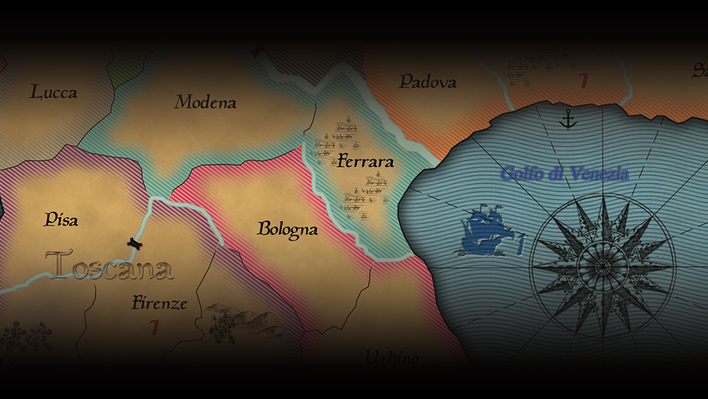Their foes, the Italian League, must beat and repel the French armies outside of Italy by setting up a large coalition with the Papacy, Spain, Venice and Milan.