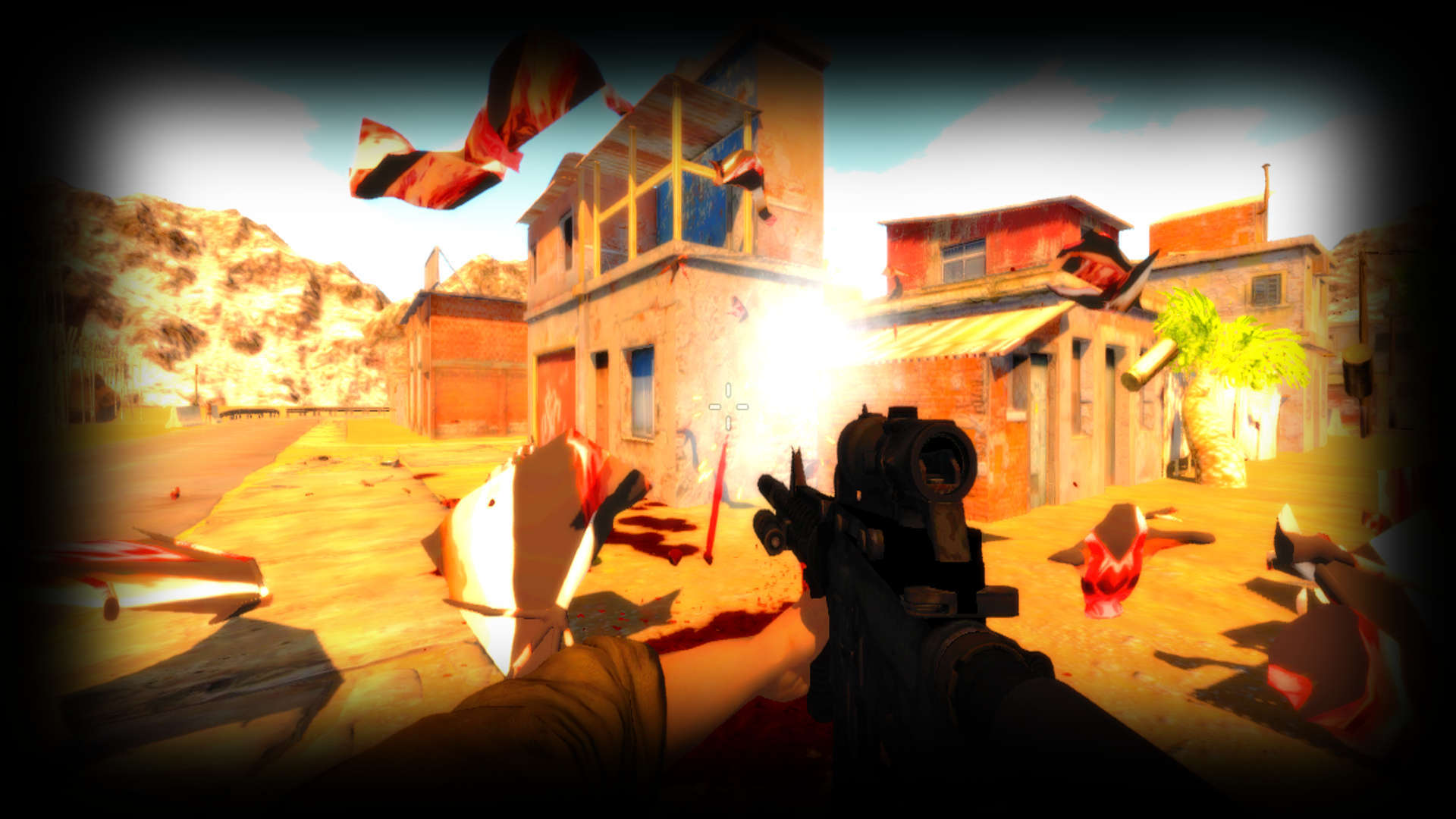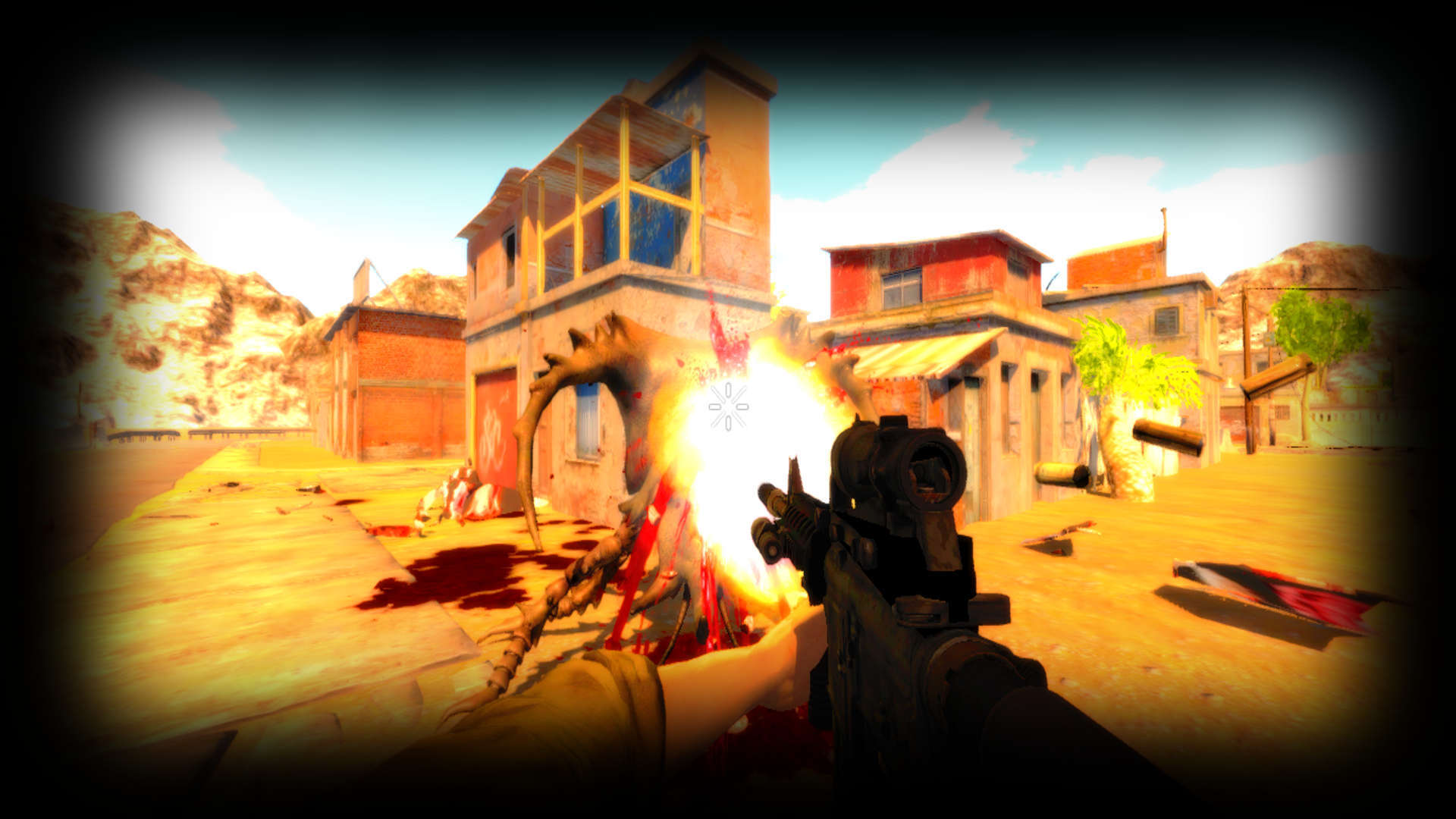 Blood Feed - The Mystery of Insectville is FPS depthless and mindless shooter, where you, smashing through the waves of bugs, insects and hordes of most disgusting things that ever roamed the earth, need to unravel the mysterious dissapearance of the whole town, including your family.