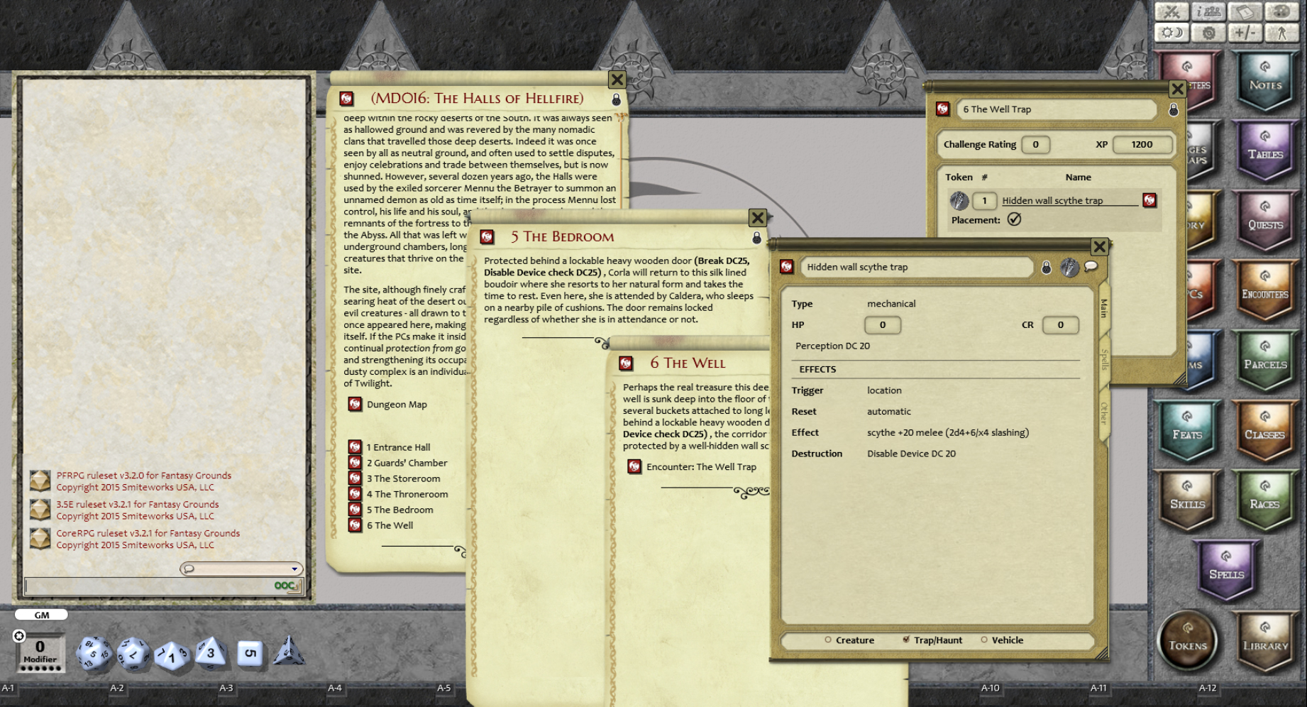 Requires: The free Fantasy Grounds virtual tabletop (VTT) software and the included Pathfinder Ruleset.