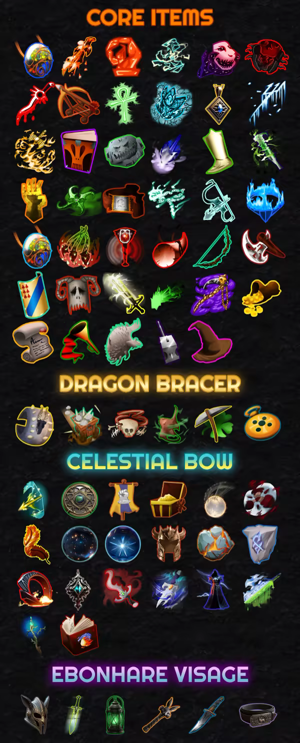 While exploring the map, you’ll discover chests containing 1 to 3 randomized items—then choose one. Most items can be stacked up to 30 times, while others are unique or exclusive to specific maps and DLCs. There are 73 items in total: