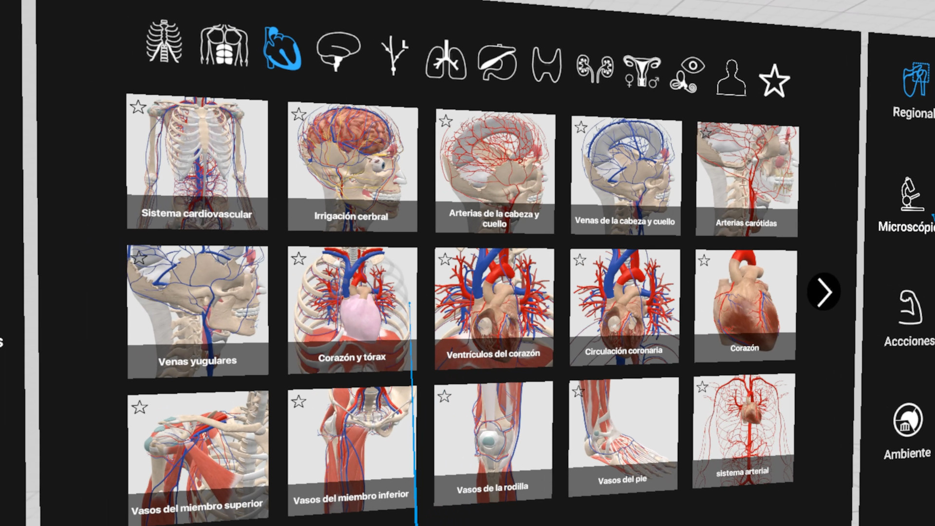 REGIONAL ANATOMY: Dive into a vast collection of preconfigured anatomy models organized in 15 body systems. Each model provides a guided learning environment, equipping you with all the essential information to kickstart your anatomy education.