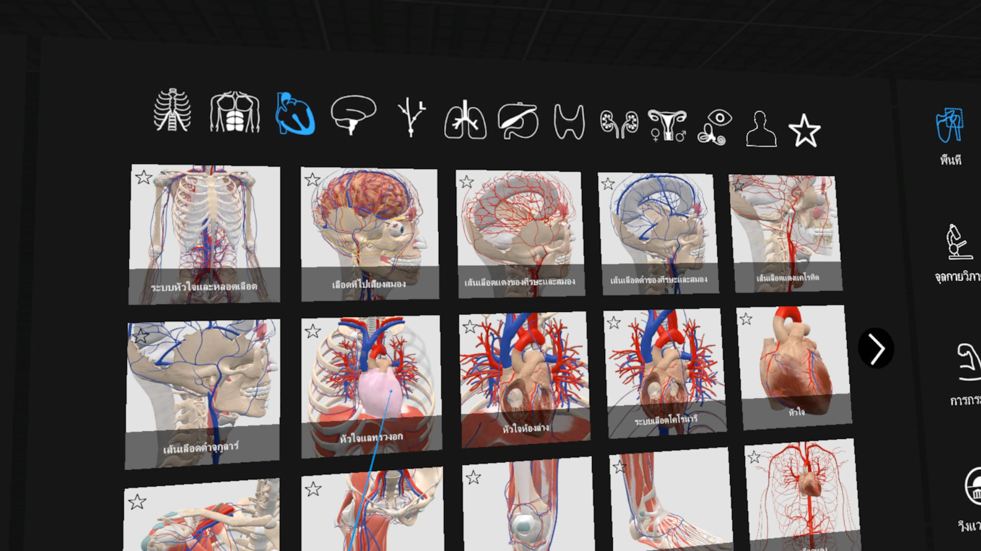 REGIONAL ANATOMY: Dive into a vast collection of preconfigured anatomy models organized in 15 body systems. Each model provides a guided learning environment, equipping you with all the essential information to kickstart your anatomy education.