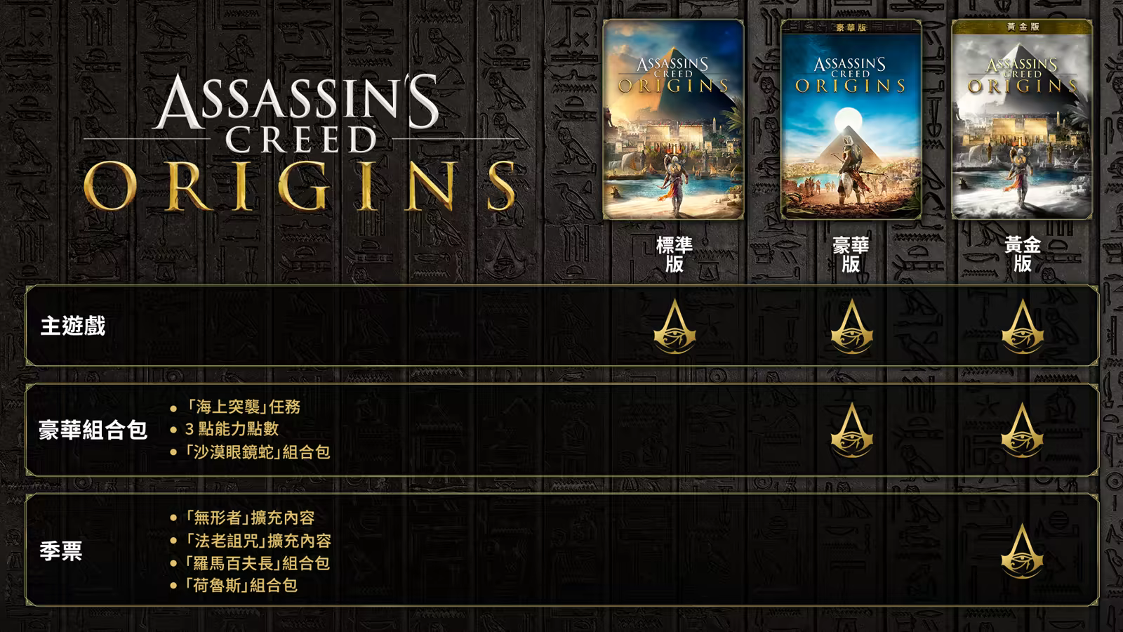 黃金版內含主遊戲、季票與豪華組合包: