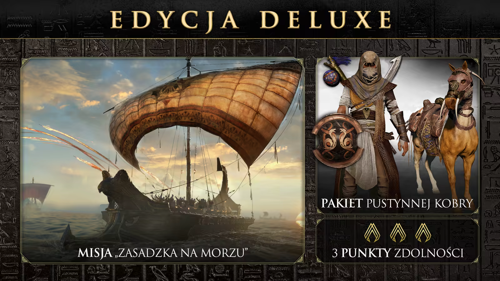 Od pustyń po bujne oazy, od Morza Śródziemnego po katakumby Gizy, żegluj w dół Nilu i walcz z niebezpiecznymi starożytnymi frakcjami i dzikimi bestiami, odkrywając gigantyczny i nieprzewidywalny kraj.