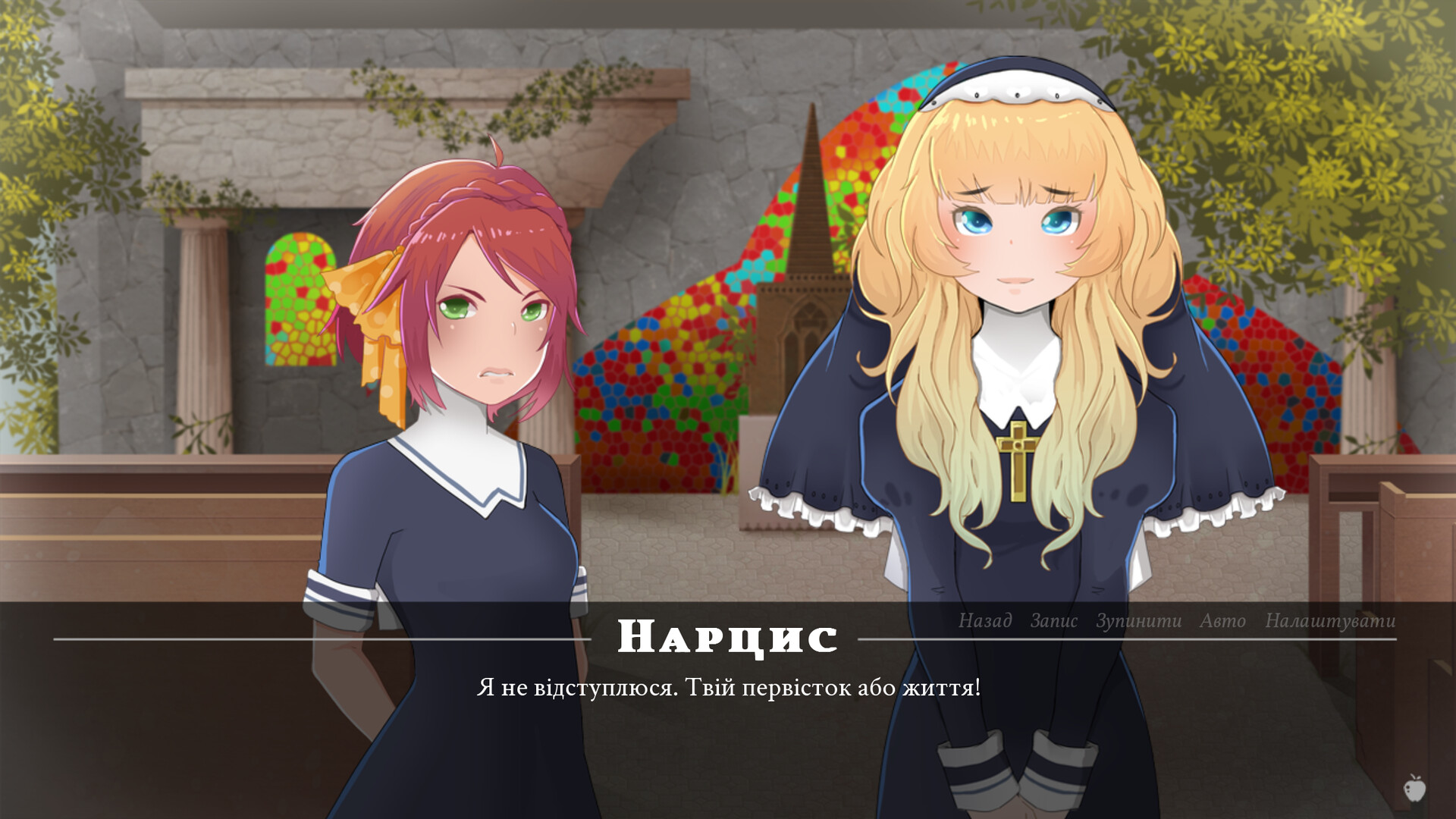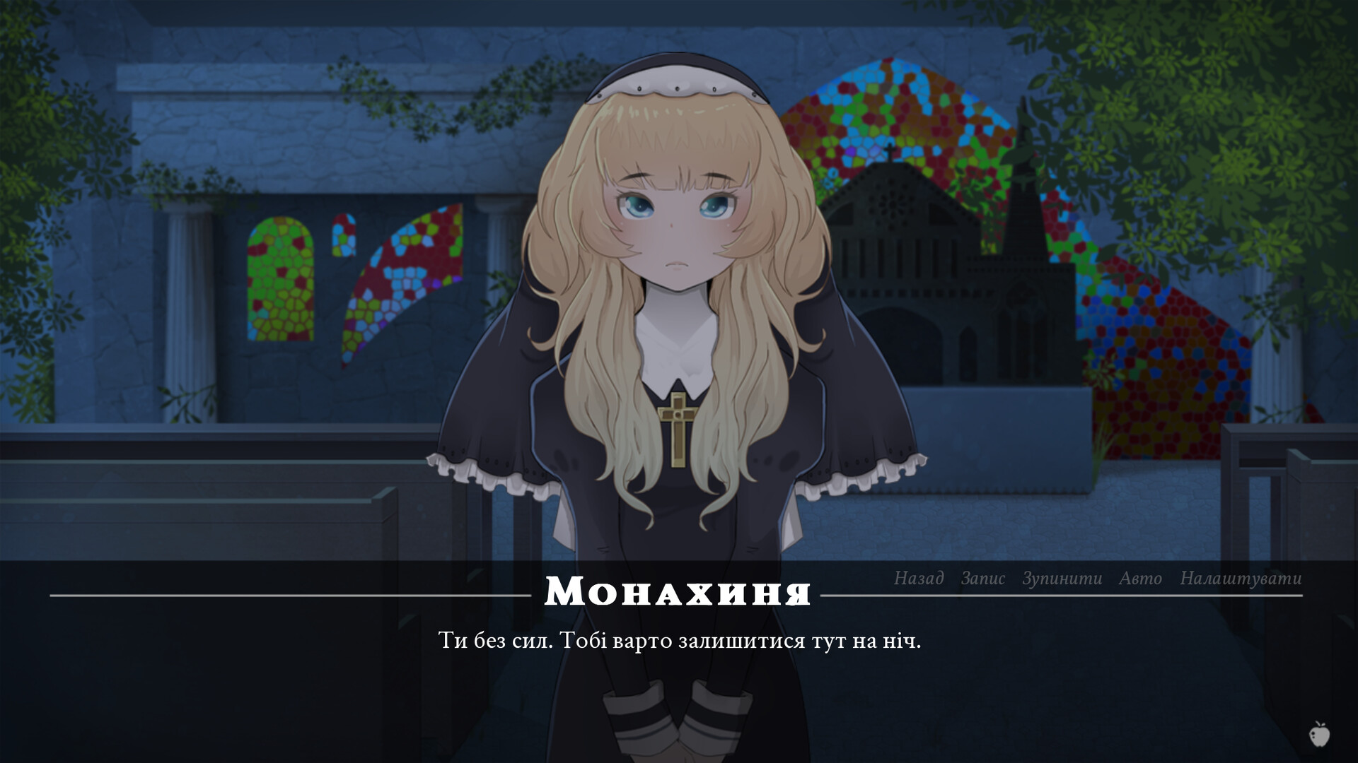 Візуальна Новела в жанрі Юрі про мандрівницю, яка натрапляє на двох монахинь у покинутій церкві.
