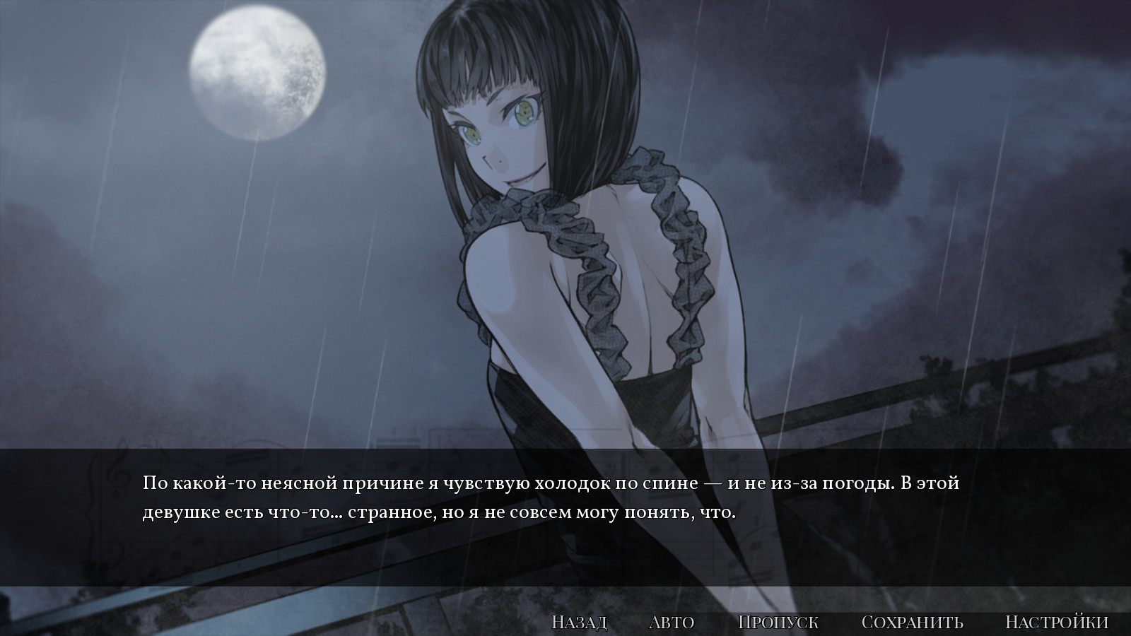 • Это кинетическая визуальная новелла. В ней нет выборов/ветвлений.