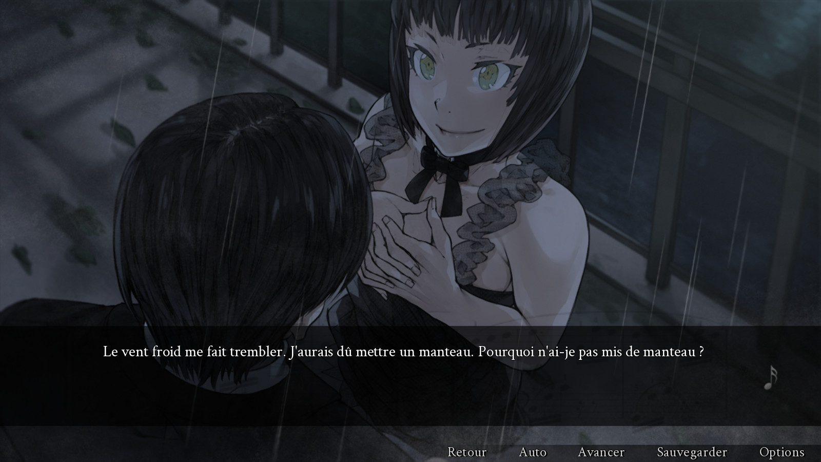 • Cette VN est du genre “kinetic”. Il n'y a pas de choix/branches.
