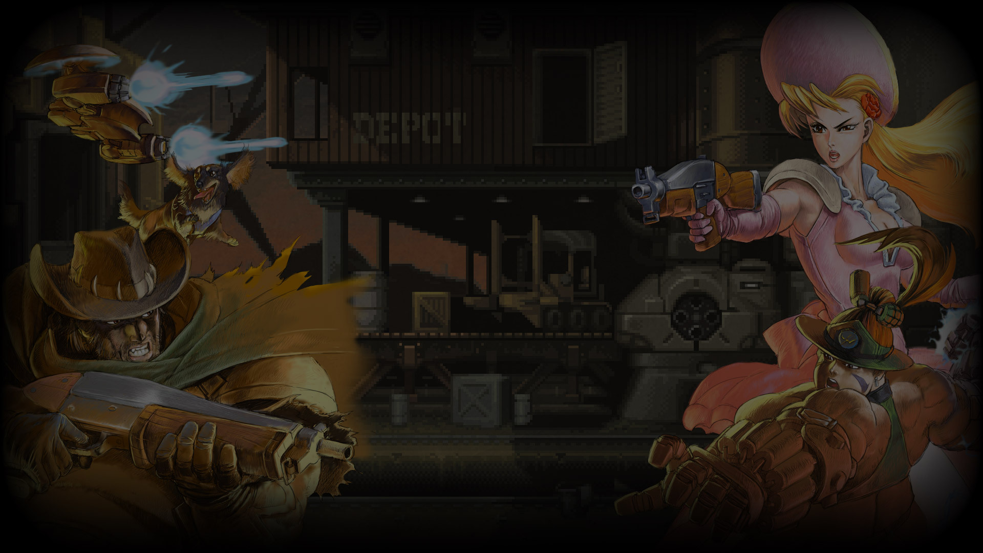 Wild Guns Reloaded is a fast-paced arcade-style shooter, mixing the Wild West with steampunk. Play as Clint, Annie, Doris, or Bullet the dog with his sentry drone. Grab some friends and play together for some four player action! Each character can jump, dive, and roll to get out of the way of the barrage of bullets enemies let fly – or shoot them down with their own gun!