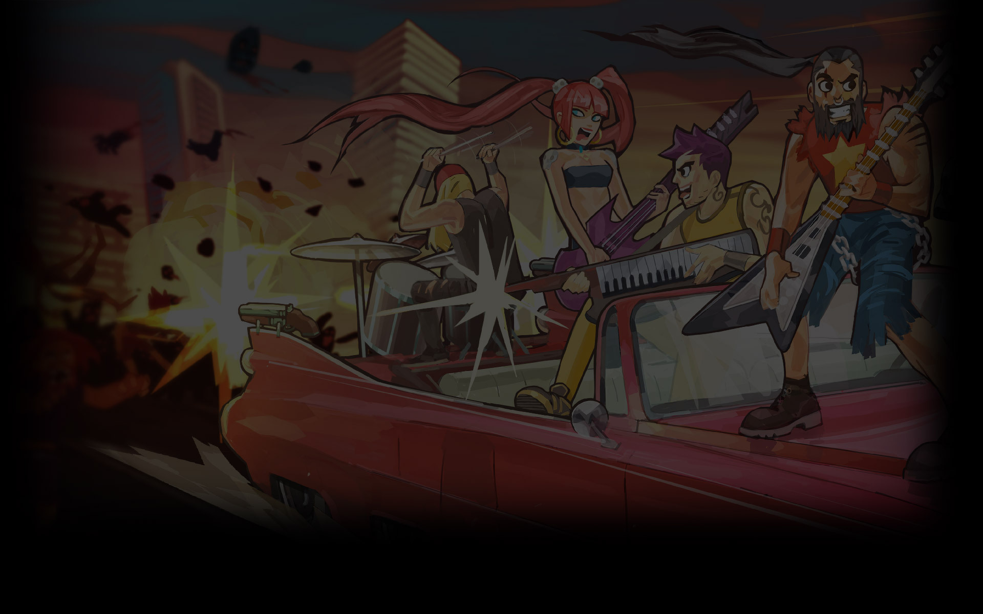Butcher loads of zombies in Rhythm with Metal! Survive on the highway to hell fighting an epic freakshow! Now with 30 levels of pure madness! 19 Licensed tracks and a Community Level Editor to import your own songs!
