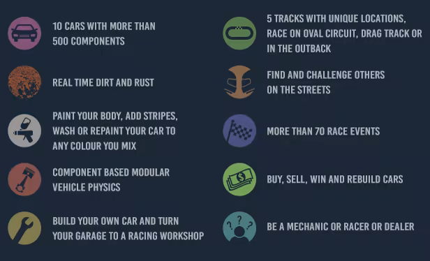 Yarış arabalarıyla uğraşan, Charlie adında bir arkadaşın var. Biraz yardımına ihtiyacı var ve seni Avustralya'ya davet ediyor. Yolculuğuna Avustralya'da küçük bir kasabada başlıyorsun, burada tanınmanın tek yolu ortamdaki en hızlı ve en iyi yarış arabasını yapmak. Charlie, uzmanlığı ve garajı ile senin yanında. Gerisi sana kalmış!