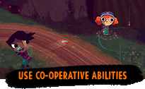 • Work together! Both characters have different skills so you'll want to experiment with how they combine in order to succeed.