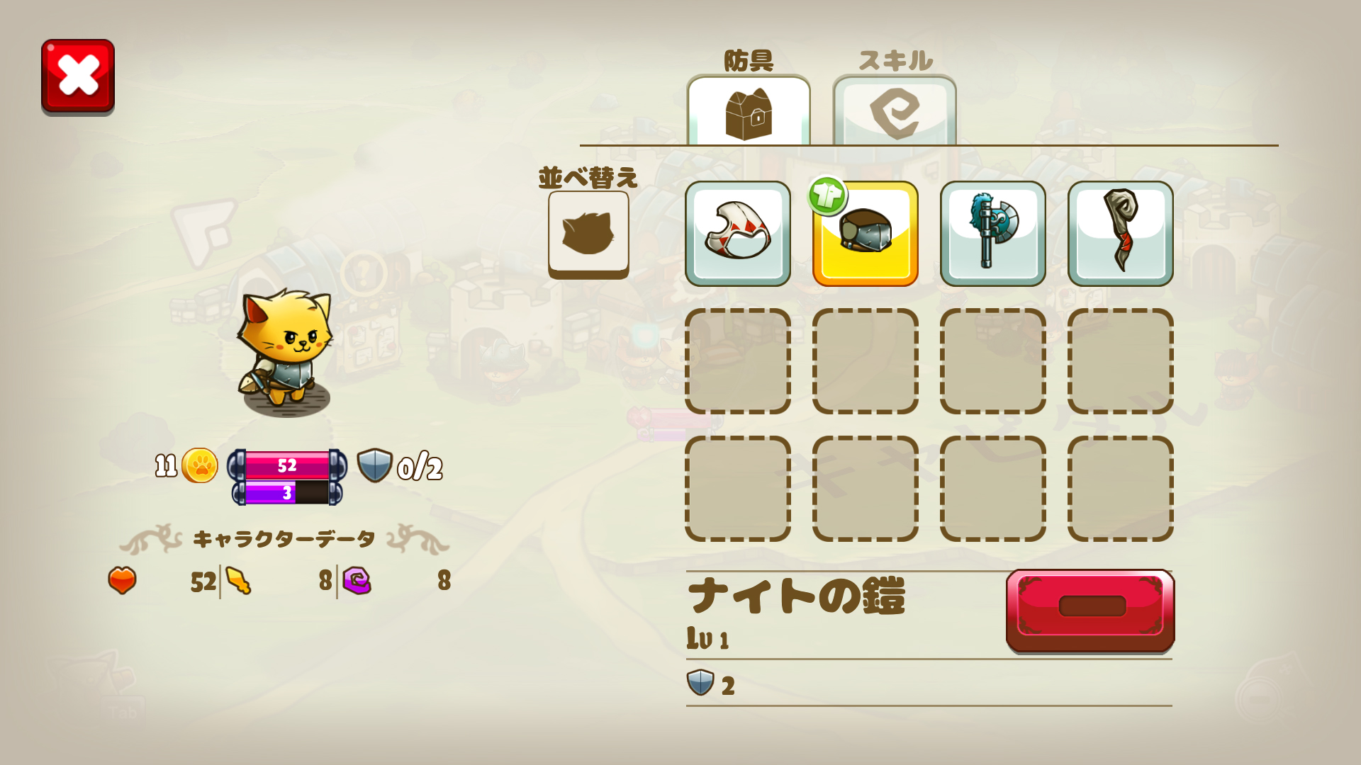 すべての装備を使って冒険家のネコを強化!呪文を唱えるのがお好きですか? アーケインフード、ローブ、杖を装備してマナを強化!攻撃から身を守りたいですか? 冒険家のネコにチェーンアーマーを装備して、体力を強化したり防御レベルを上げたりすることができます。 武器、防具、呪文を組み合わせることで、プレイスタイルに最適な状態を作り出すことができます。