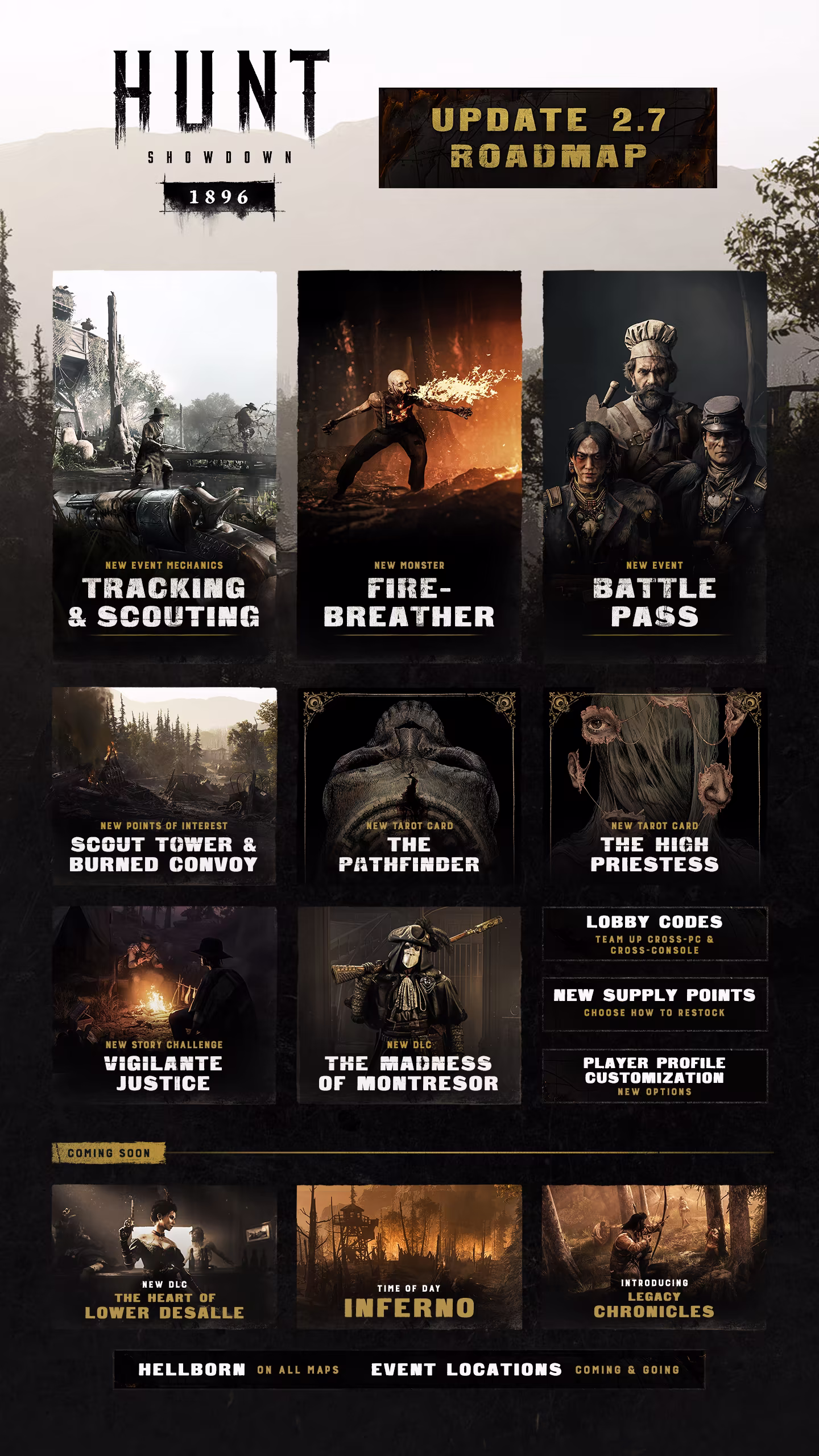 Hunt: Showdown 1896 is a new era of the addictively unforgiving extraction shooter. In corrupted backwaters lost to history, fight back alone – or with friends – against timeless evil. Twisted monsters and other ruthless Hunters stand between you and your Bounty. Risk everything as Hunt consumes you.