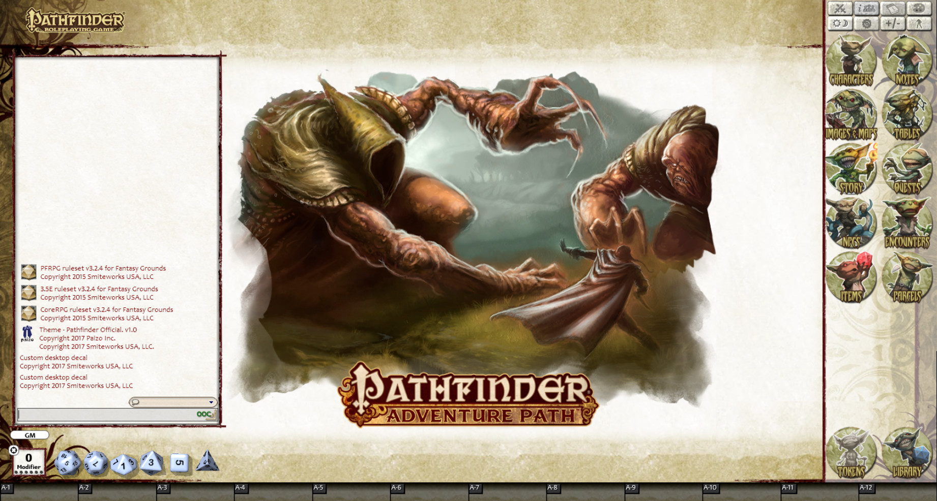 Requires: The free Fantasy Grounds virtual tabletop (VTT) software and the included Pathfinder RPG and D&D 3.5/ OGL ruleset.