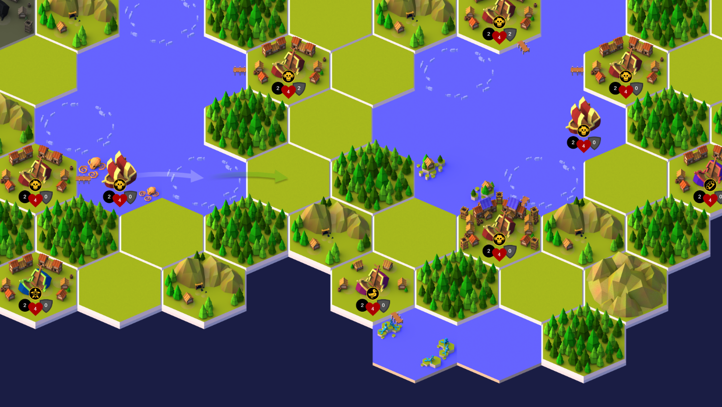 Build up the biggest ships and cities on the seas. Stack your ships and cities with unlimited levels of cannons, health, and armour. Upgrade your cities to improve your harvest. Cities can harvest food, wood, and metal from surrounding land hexes. Food can also be harvested from sea tiles with fish. The best bounty comes from rare treasures of the sea, such as mystic mermaids, precious pearls, and terrible tusks. Use these treasures to drive your economy and to hire goblin crew for your ships.