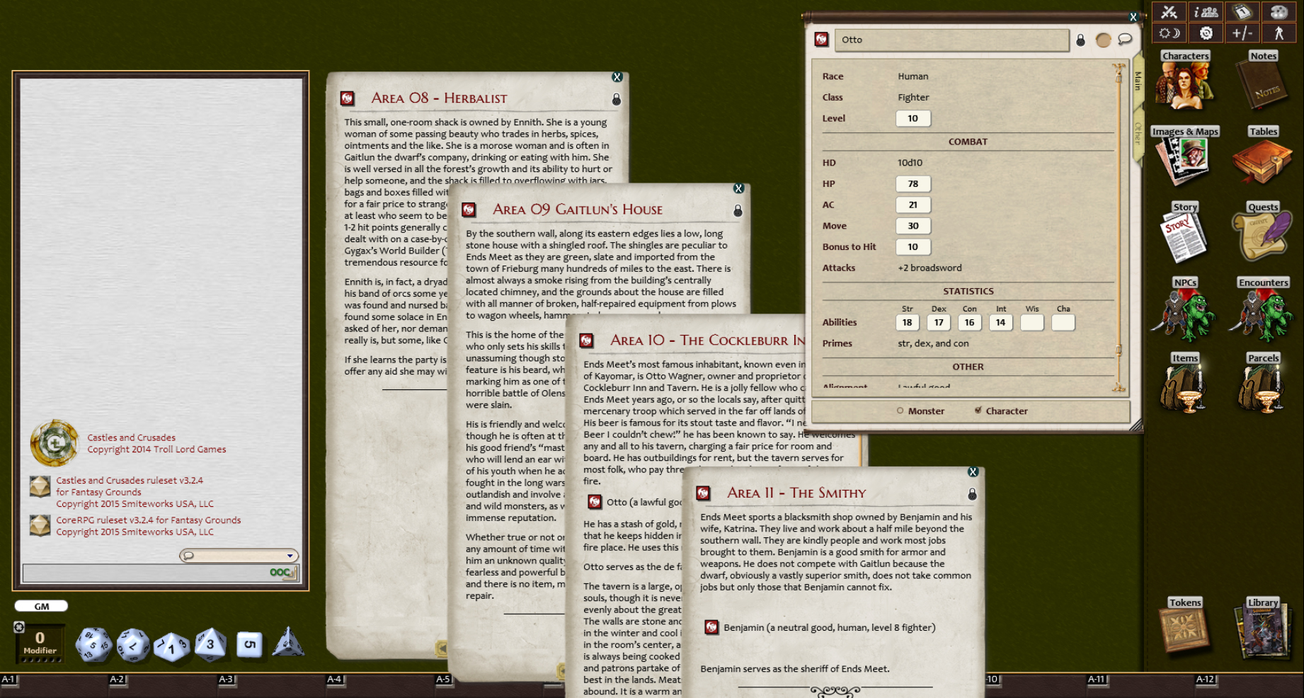 Requires: The free Fantasy Grounds virtual tabletop (VTT) software and a one time purchase of the Castles & Crusades ruleset.