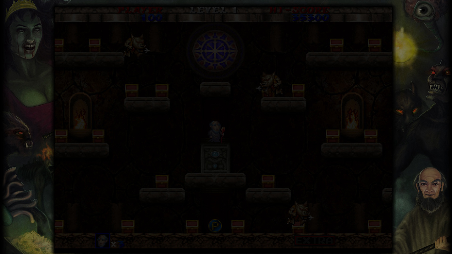 Eternum Ex is a retro platform video game with the look and feel of the ’80s arcade cabinet games. Titles that have inspired and most influenced its creation are: Bomb Jack (Tehkan, 1984), Ghosts’n Goblins (Capcom, 1985), Baluba-louk no Densetsu (Able, 1986) and Psychic 5 (Jaleco, 1987).