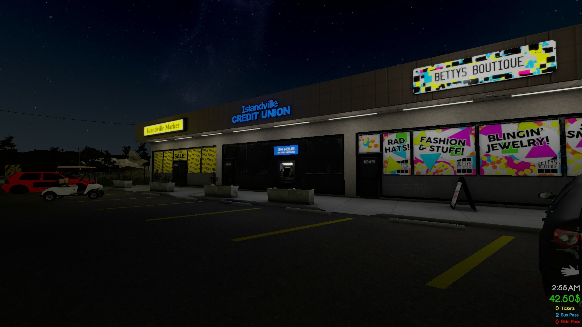 “The current state of The Coin Game is 4 stocked and playable arcades that contain 50+ detailed machines , Carnival games, an indoor shopping mall, a waterpark and also a way to sell your old prizes to Barry the Pawn Dealer for more cash. A full newspaper delivery route, baby sitting job, lawn mowing system and full survival/health stats platform. Vehicles for transportation around the island.”