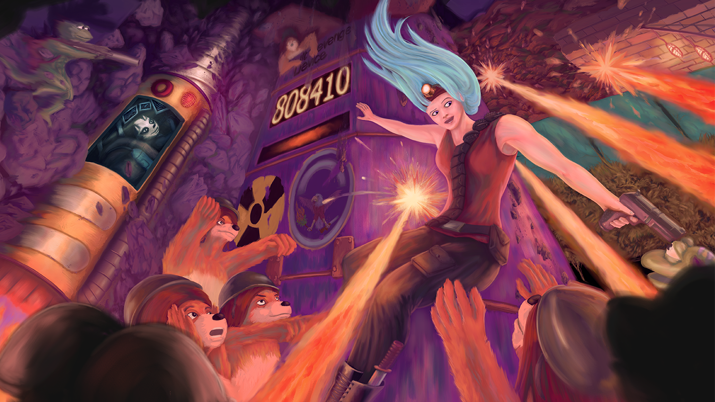 Your president has been insulted by the Mole King and it’s up to you to defend his honor and claim revenge! Escort an unfeasibly huge bomb to the center of the earth in endless falling platform action. Brace yourself for ridiculous deaths at high speed as you equip a bounty of spectacularly overpowered weapons and bizarre power-ups that constantly shake up your tactics. Take on the Molemen and their allies, evading and attacking as they try to destroy you, your bomb and your one objective - REVENGE!