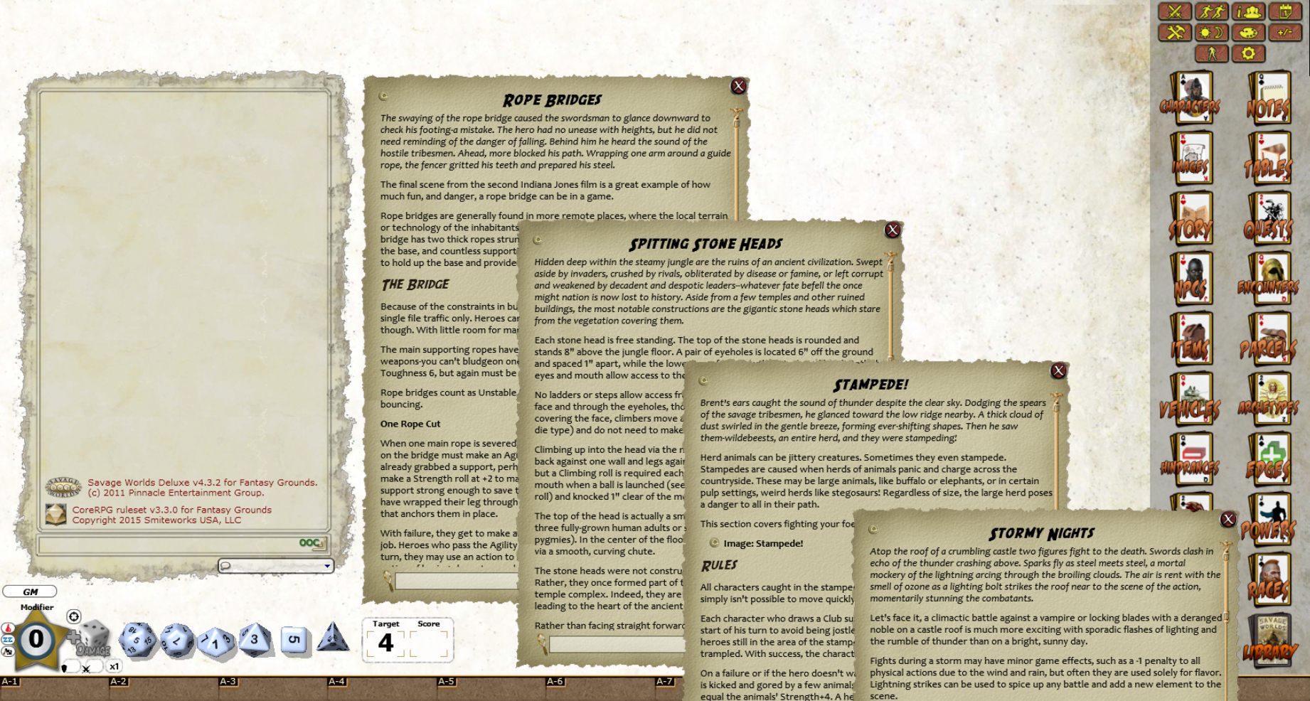 look up details on how to conduct encounters in unusual situations. The Savage Worlds