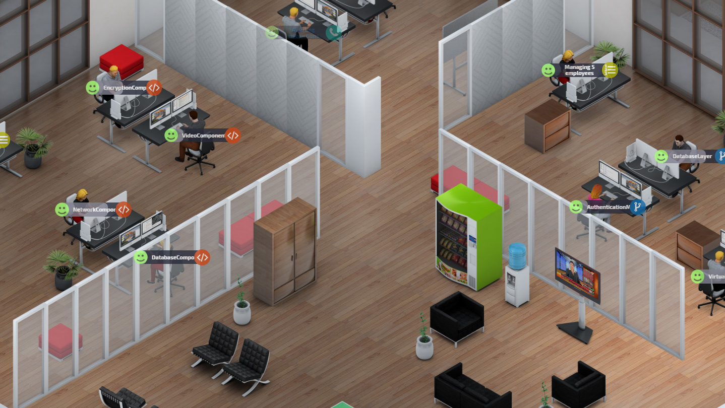 The city offers you offices in all sizes and shapes. It’s up to you to select the most suitable. It’s your job to organize and decorate the office while keeping your employees happy.