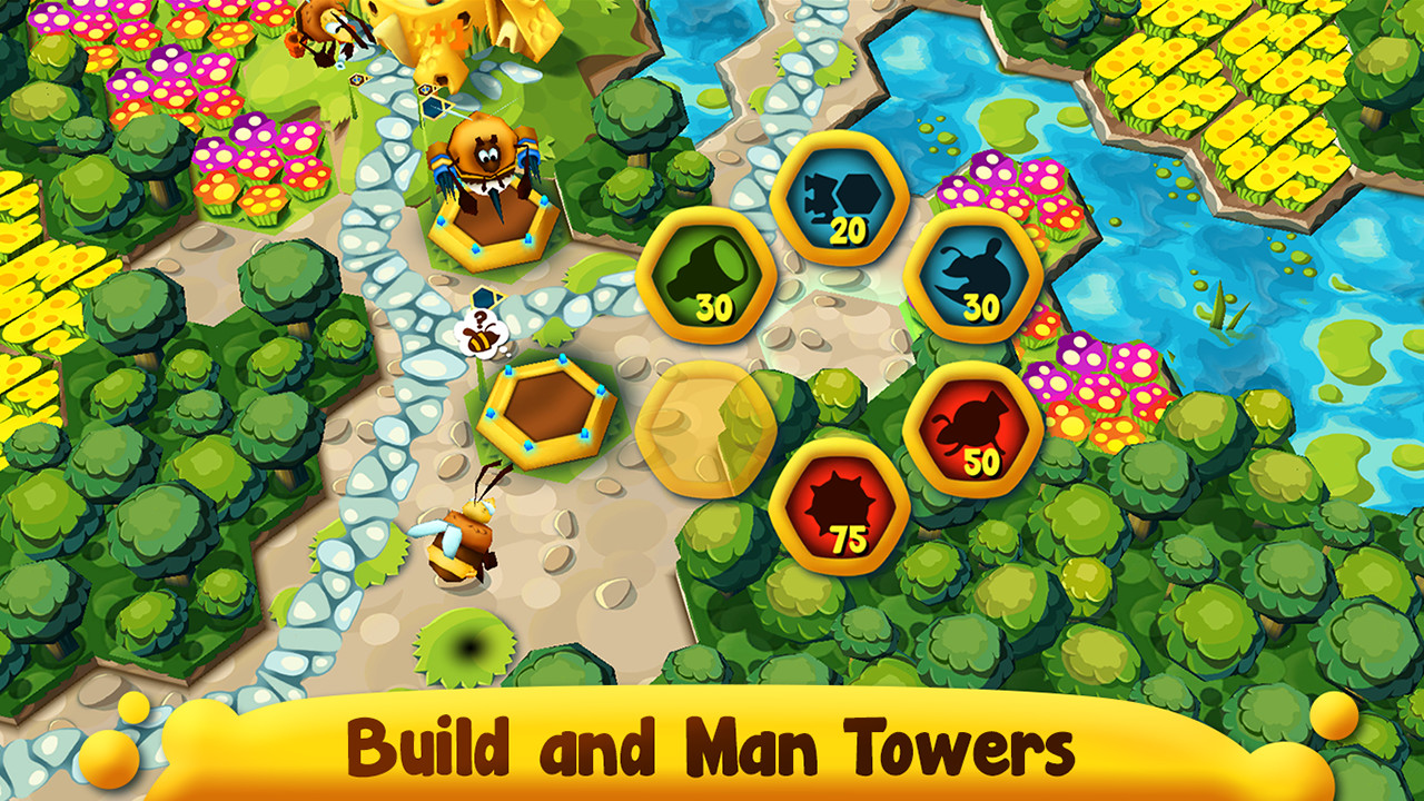 Protect your bee hive fortress against the hornet menace by building the best Bee defense: a BeeFense! Command your Bees to get beesy. Let them collect honey dew - the most precious resource in the world to upgrade your tower and train heroic Bee fieldrunners. Defend your bee hive fortress against the evil Queen Hornetta, who has been genetically modified in order to vanquish the bee colony and steal your honey.