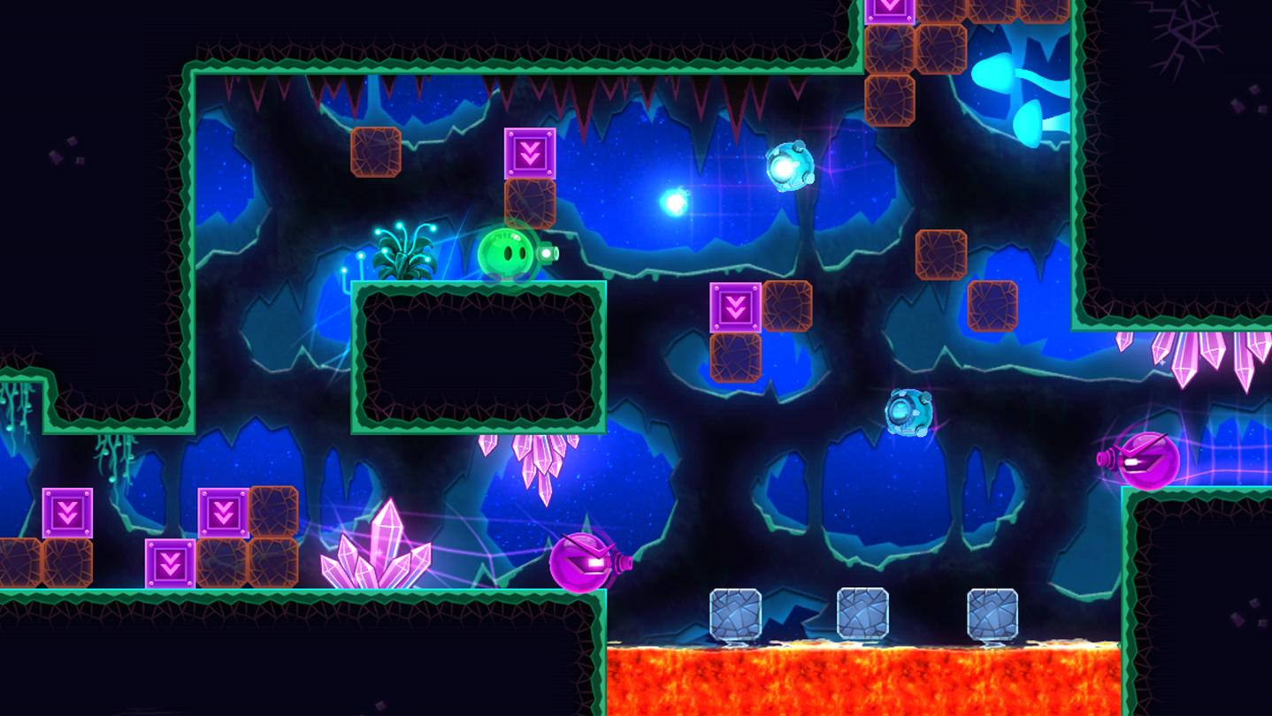 Glitch is chilling at his favorite local haunt when he sees something impossible in the sky: his home planet’s moons seem to be hemorrhaging life-giving Moon Juice—and what are those giant breweries sucking it all up? If Glitch doesn’t find out what’s going on and put a stop to it soon, all of the Moon Juice will be siphoned away and his own world won’t survive. Take control of the lovable hero in an action-packed, twitch-paced platformer that’s equal parts relentless and charming.