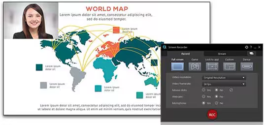 Expand your audience by streaming presentation with HD screen sharing and integrated webcam video to YouTube and Facebook. It’s the easiest way to hold interactive presentations and connect with customers and staff.