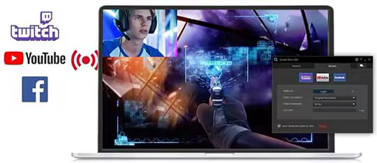 Using Screen Recorder you can connect directly to the platform of your choice and stream video in up to Full HD quality. Livestreaming gameplay to Twitch, YouTube or Facebook is a great way to share your love of gaming with the world.