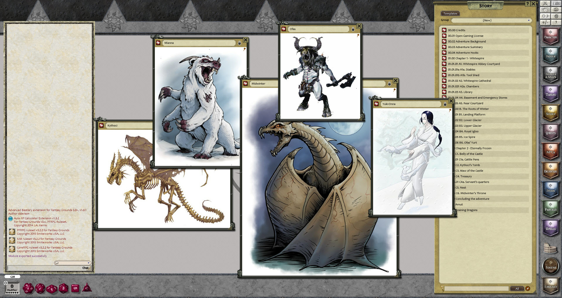 Requires: The free Fantasy Grounds virtual tabletop (VTT) software and the included Pathfinder RPG and D&D 3.5/ OGL ruleset.