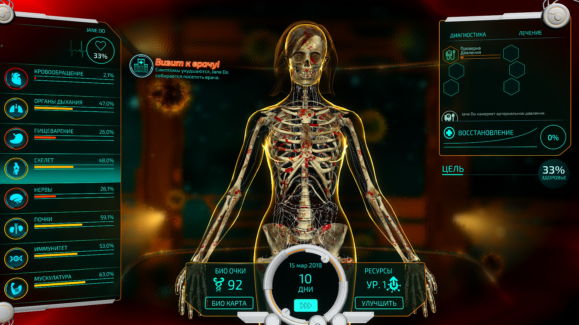 Благодаря более 600 реальных болезней, симптомам, диагностическим анализам, лечению и другими видами заболеваний, Bio Inc.: Redemption пугающе реалистичен. Он будет очаровывать вас в течение нескольких часов, окуная вас в микроскопический мир!