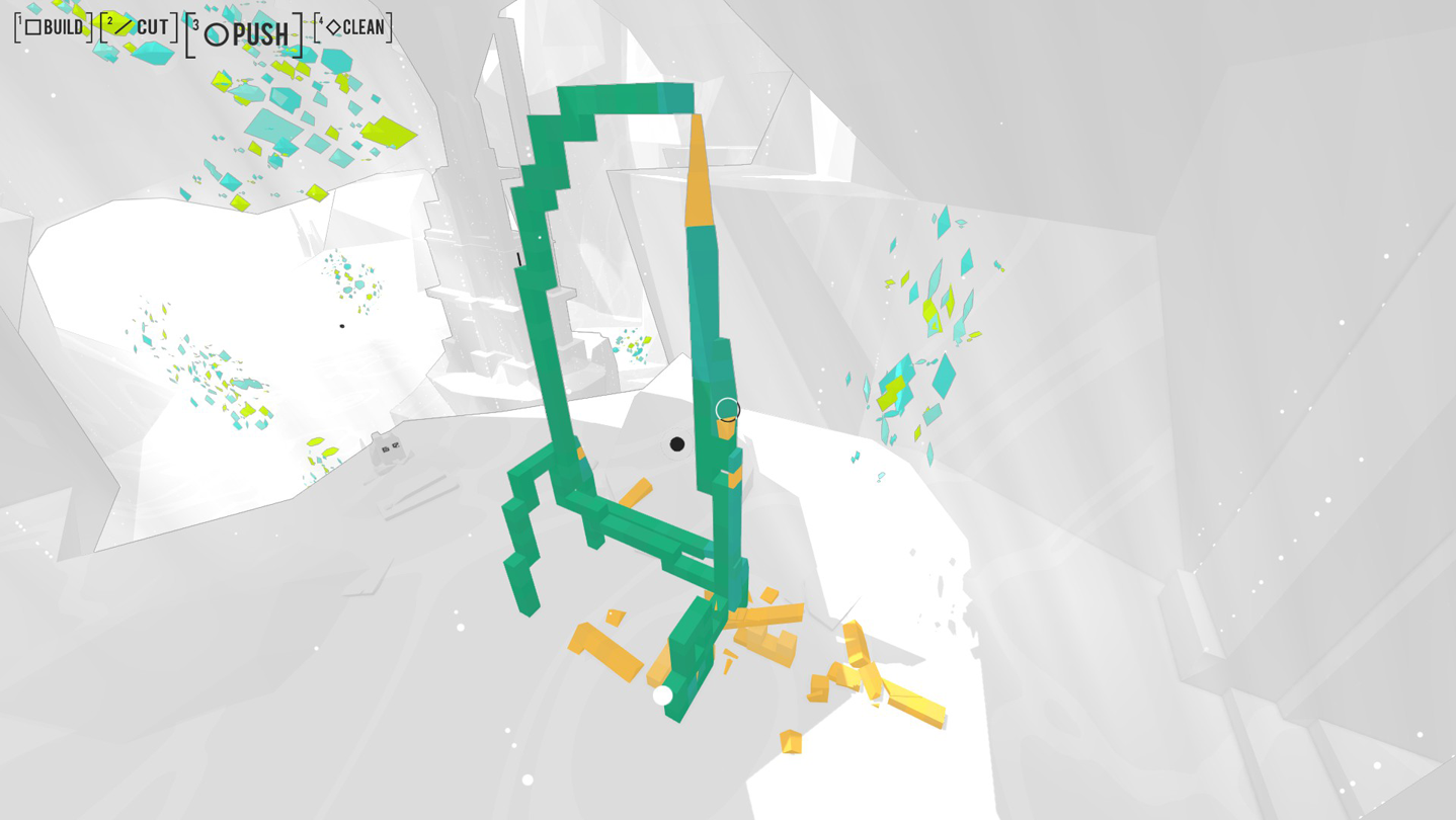 At the core of the experience rests a powerful tool. Create colorful structures with the abilities it grants, cut and sculpt them with precision and clear away cut-off fragments. Express your creativity and navigate the massive, open world however they you wish.