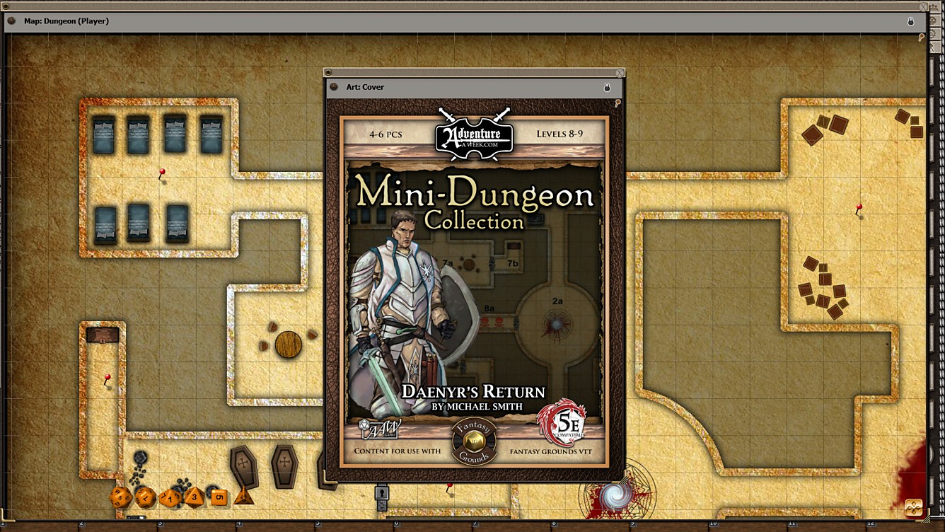Requires: The free Fantasy Grounds virtual tabletop (VTT) software and the included 5E Ruleset.